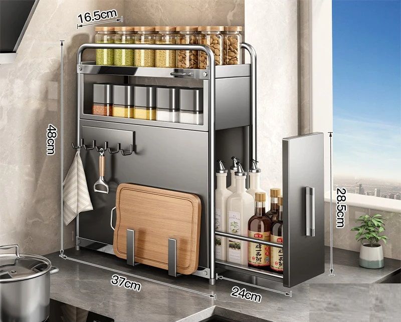 Multipurpose Kitchen Spice Organizer With Pull Out Seasoning Drawer Rack, Dustproof Countertop Cup And Spice Storage gray Large