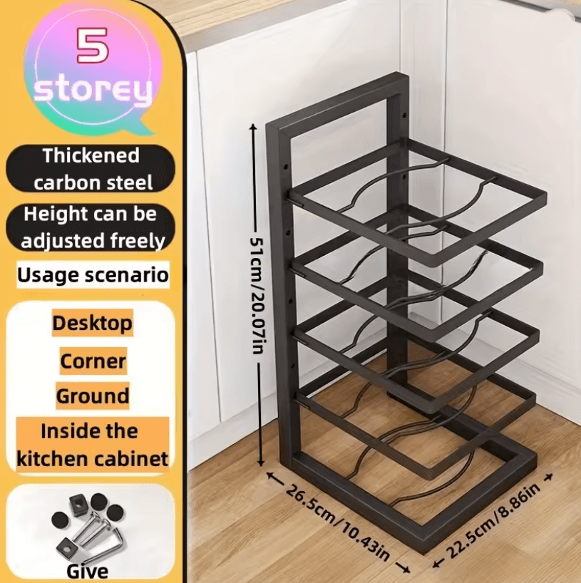Adjustarack Multi Layer Adjustable Pot Rack Organizer Stainless Steel Kitchen Pot Storage Rack 5 Tier Black