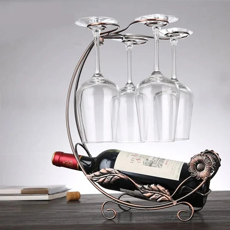 Metal Wine Rack & Glass Holder: Creative Bar Stand Display Black
