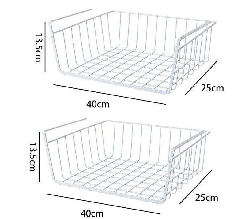 Hanging Basket Storage Rack, Multi Functional Perforated Iron Bottom Wire Basket For Kitchen & Bathroom Organization large White 2pc