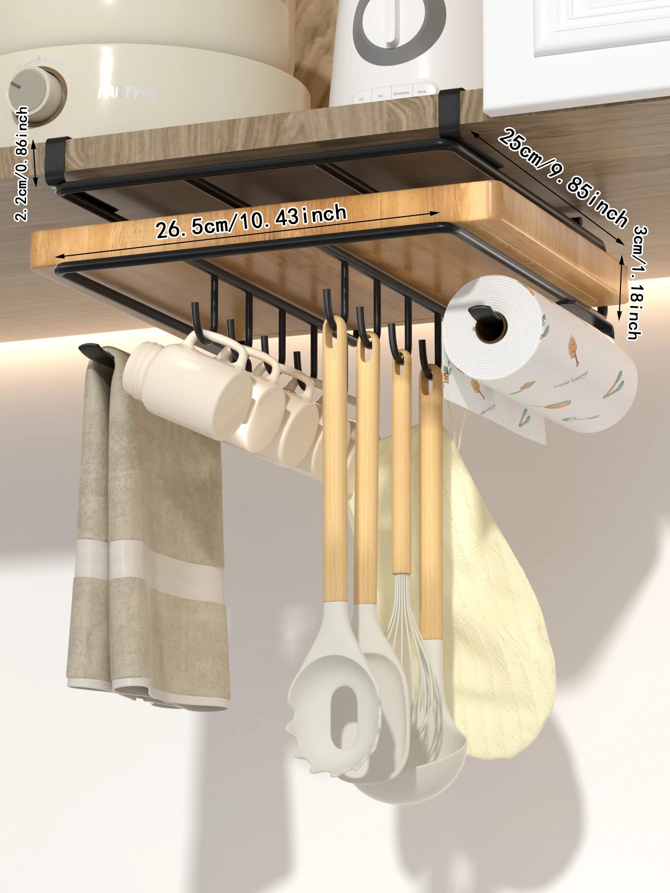 Under Cabinet Hanging Rack: Iron Art Organizer For Kitchen, Cutting Board Holder, Pot Cover Storage With Hooks 5