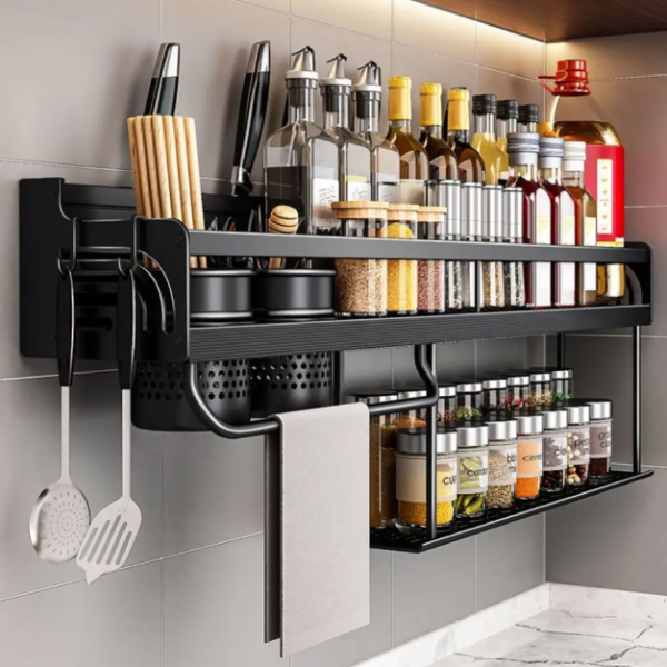 Wall Mounted Kitchen Organizer: Spice Rack, Knife Holder & Utensil Storage 30cm