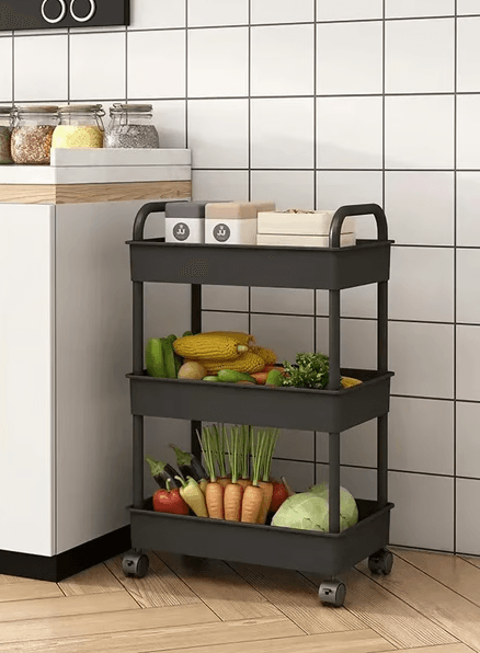 Multi Layer Trolley Rack Kitchen Floor Bedroom Baby Snacks Mobile Bathroom Bathroom Storage Storage Rack black 3 shelf