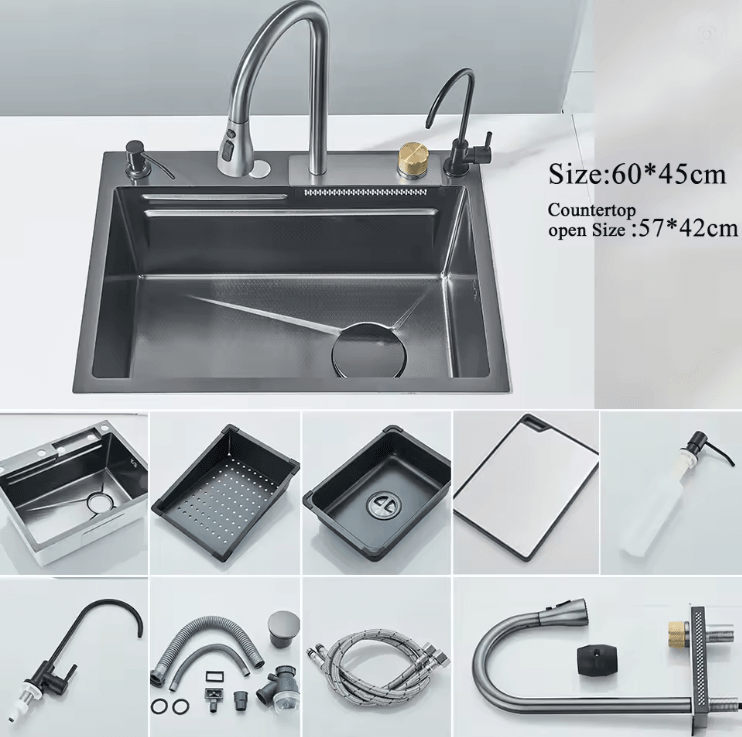 Smart Waterfall Workstation Sink With Digital Display 60x45cm 001