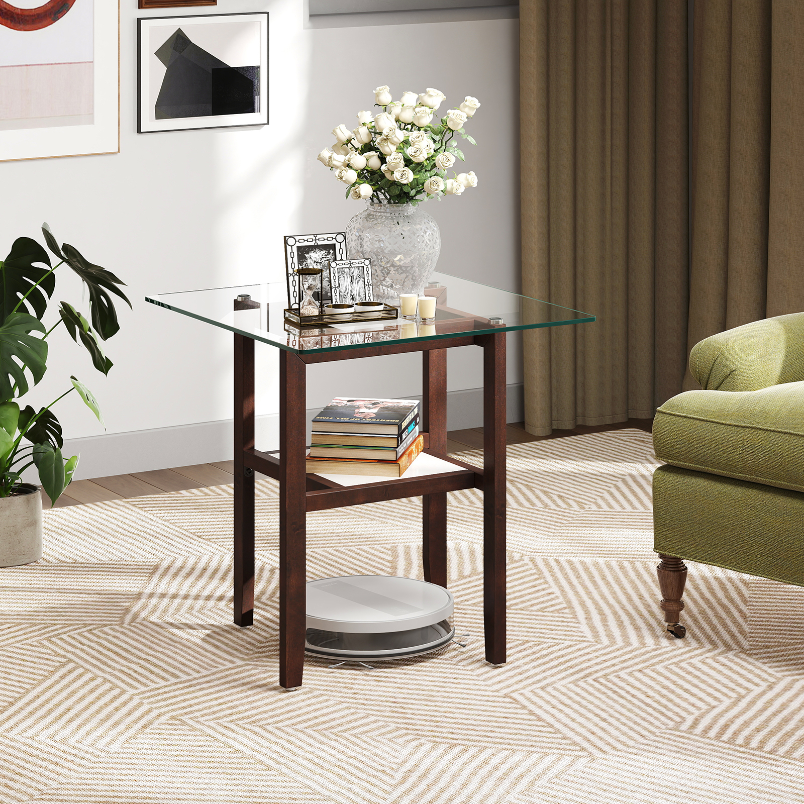 Elegant 24 Inch Square Glass Coffee Table, 2 Tier Center Table With Storage Shelf Elegant 24 Inch Square Glass Coffee Table, 2 Tier Center Table With Storage Shelf