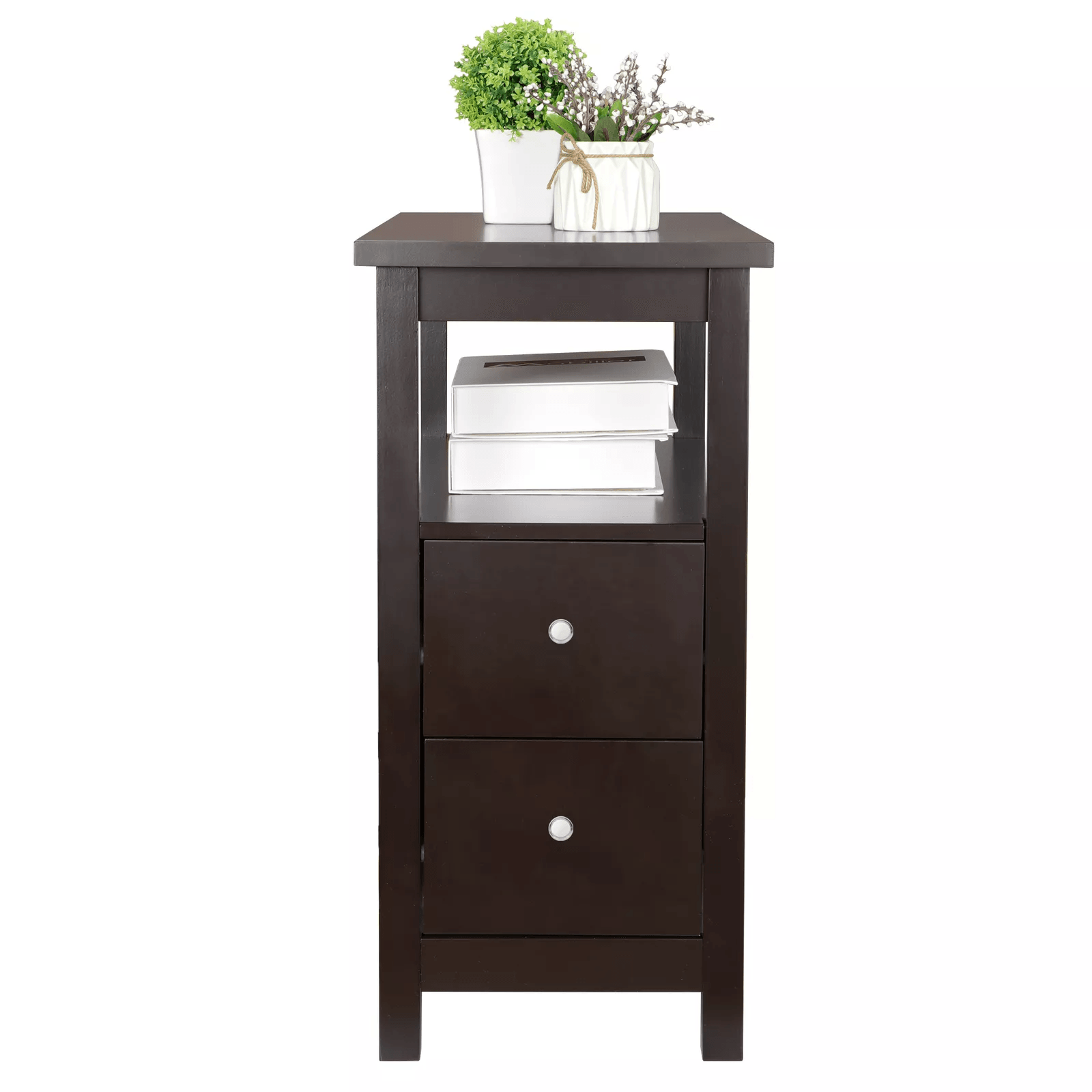 Chairside End Table With 2 Drawer And Shelf, Narrow Side Table For Home Decor & Storage, Reddish Brown Accent Table Chairside End Table With 2 Drawer And Shelf, Narrow Side Table For Home Decor & Storage, Reddish Brown Accent Table