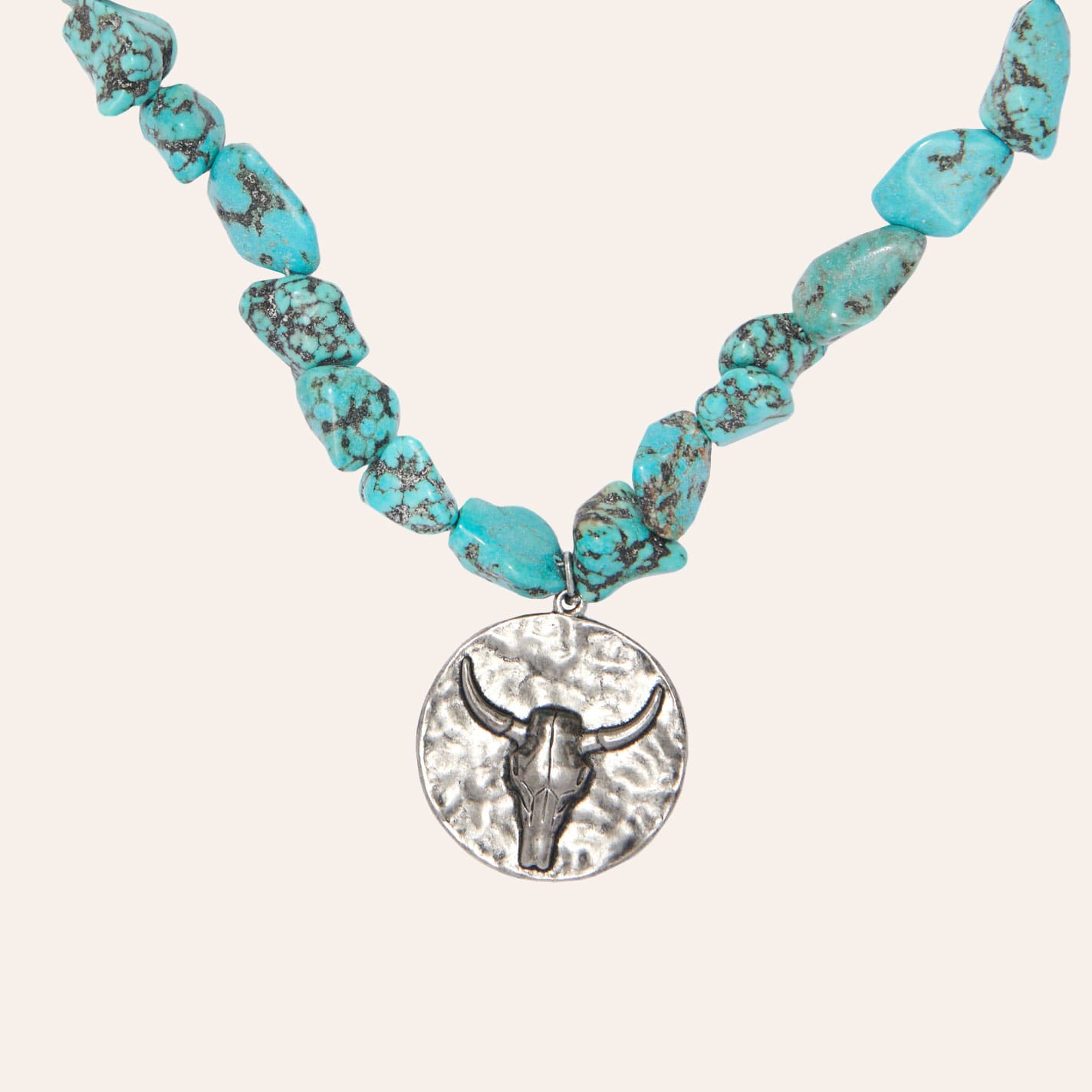 Rockin' C Turquoise Rock Beaded Necklace With Steer Head Pendant - NOSZ - From Cavender's