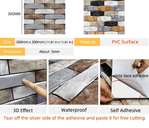 3D Brick Wall Stickers Set Waterproof Peel & Stick Wallpaper For Home Decor (15PCS) te 545 10 Pieces