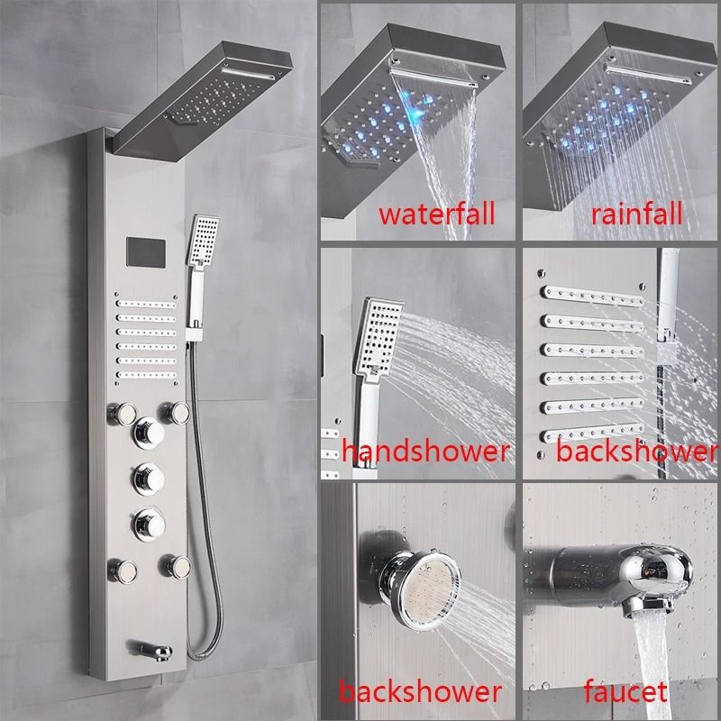 LED Rainfall Shower Panel With Digital Display And Massage Jets black 8024