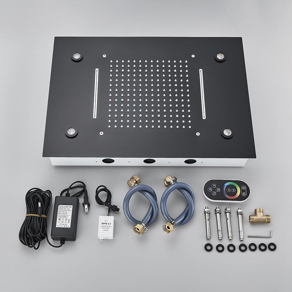 Black Ceiling Intelligent LED Rainfall Waterfall Shower Head, Concealed Single Shower Tap black
