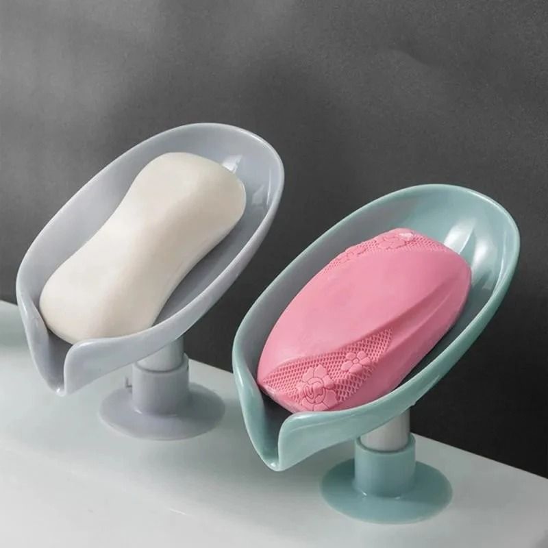 Leaf Shape Soap Holder With Suction Cup Sponge Dish Rack gray