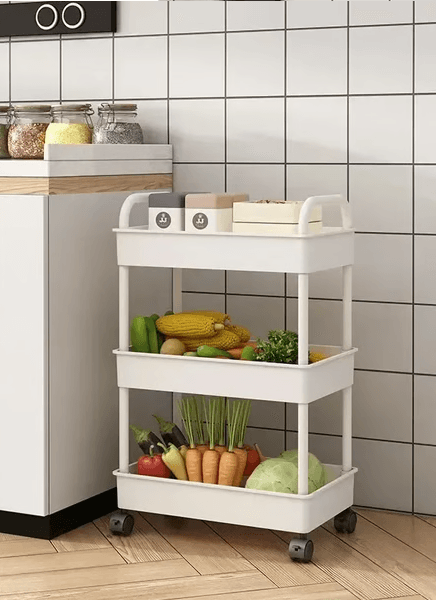 Multi Layer Trolley Rack Kitchen Floor Bedroom Baby Snacks Mobile Bathroom Bathroom Storage Storage Rack white 3 shelf