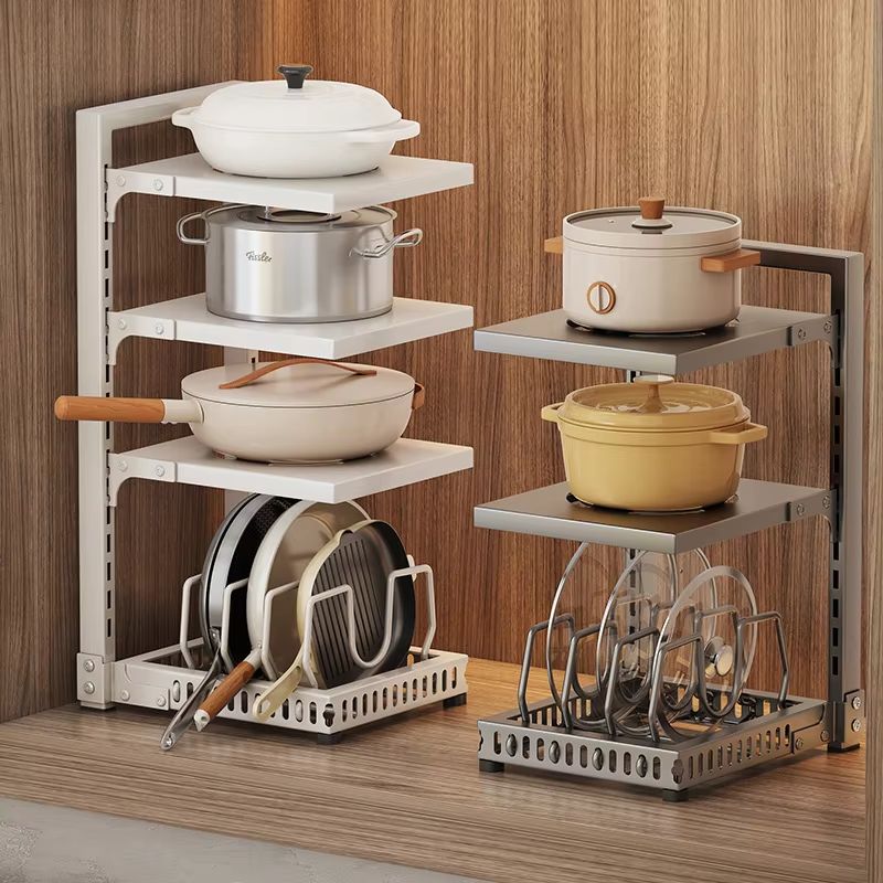 Under Cabinet Sliding Drawer Pot Lid Organizer, Pull Out Kitchen Pots And Pans Storage Tray upgrade White