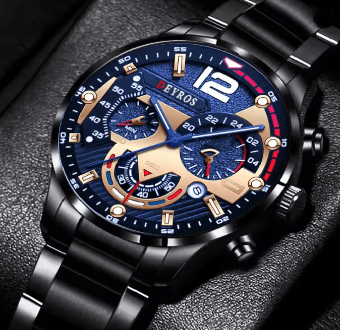 Stainless Steel Quartz Watch For Men With Calendar And Luminous Display b