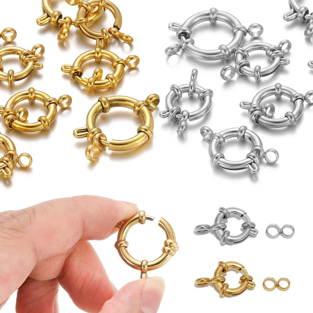 Stainless Steel Gold Round Spring Clasps Set For Jewelry Making 14 Mm gold