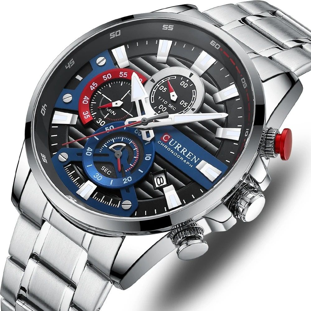 Curren Stainless Steel Chronograph Quartz Watch For Men With Water Resistant Design silver black