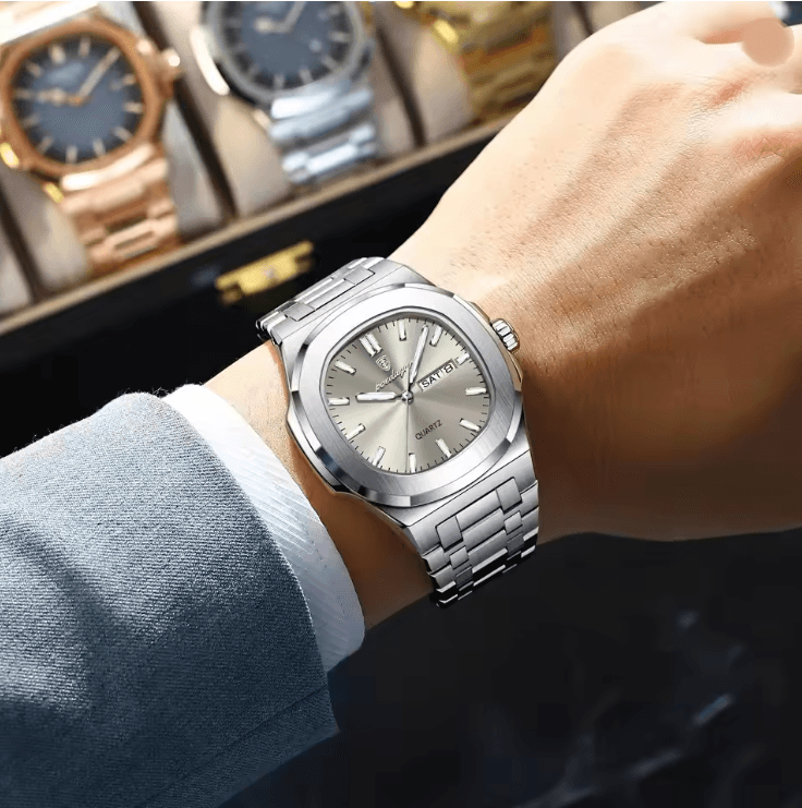 OFNS 2025 New Men's Business Quartz Watch Waterproof Luminous Single Calendar Display Leisure Fashion Personalized Watch For Men light Blue