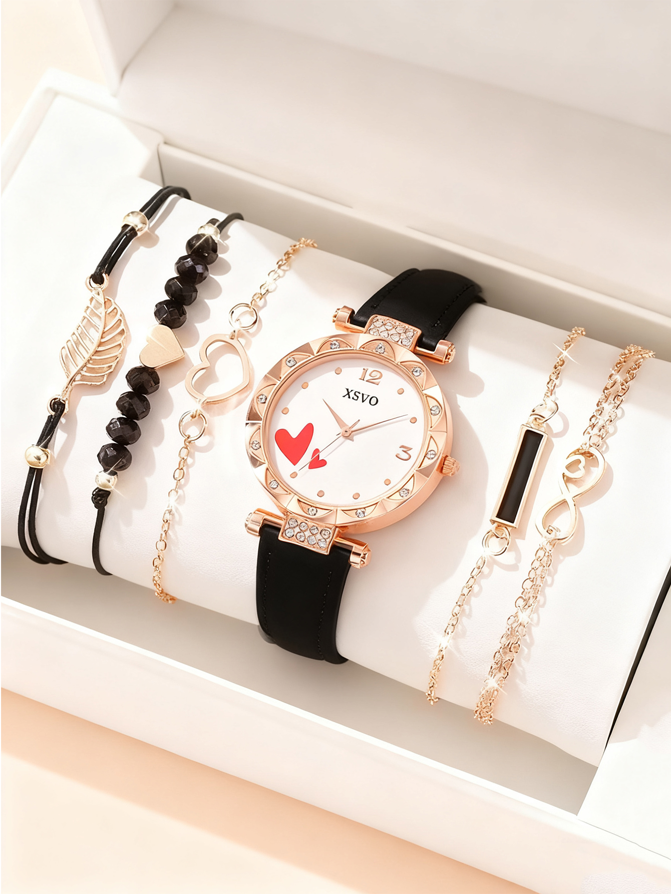 Rose Gold White Watch Set, Love Diamond Women Watch, Light Luxury Fashion Bracelet Holiday Gift Rose Gold White Watch Set, Love Diamond Women Watch, Light Luxury Fashion Bracelet Holiday Gift