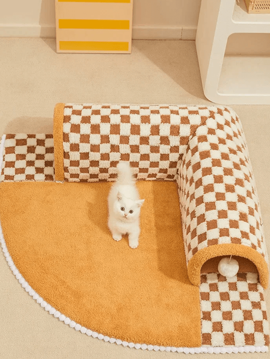 Convertible Cat Tunnel Bed And Dog House Mat For Small Pets 60x60cm coffee